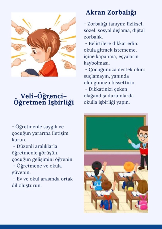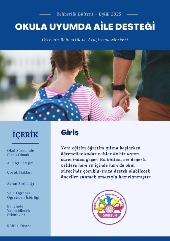Rehberlik ve Psikolojik Danışma Hizmetleri Bölümümüz tarafından 2025-2026 Eğitim Öğretim yılında okula uyum sürecinde olan öğrenci velilerimize yönelik içerik hazırlanmıştır.